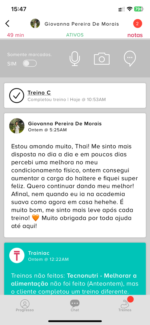 Somente agradecer por esse ano! Você foi fundamental para minha performance nos treinos. Se adaptou quando necessário, os dias que eu não estava bem foi parceira e flexível com os horários. Nota 10/10 pra você!